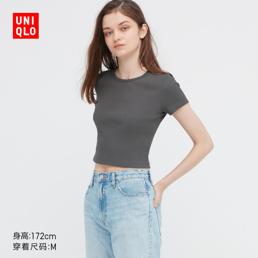 Премиум хлопок Quill. принт круглый воротник Короткая футболка короткий рукав короткий ) 446802 UNIQLO