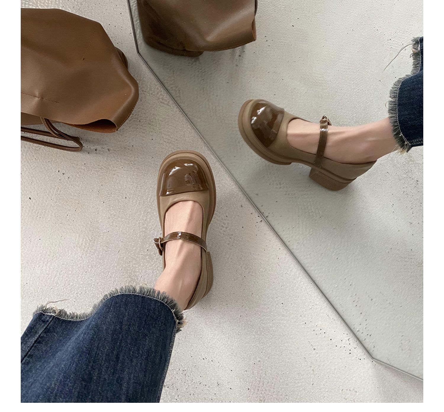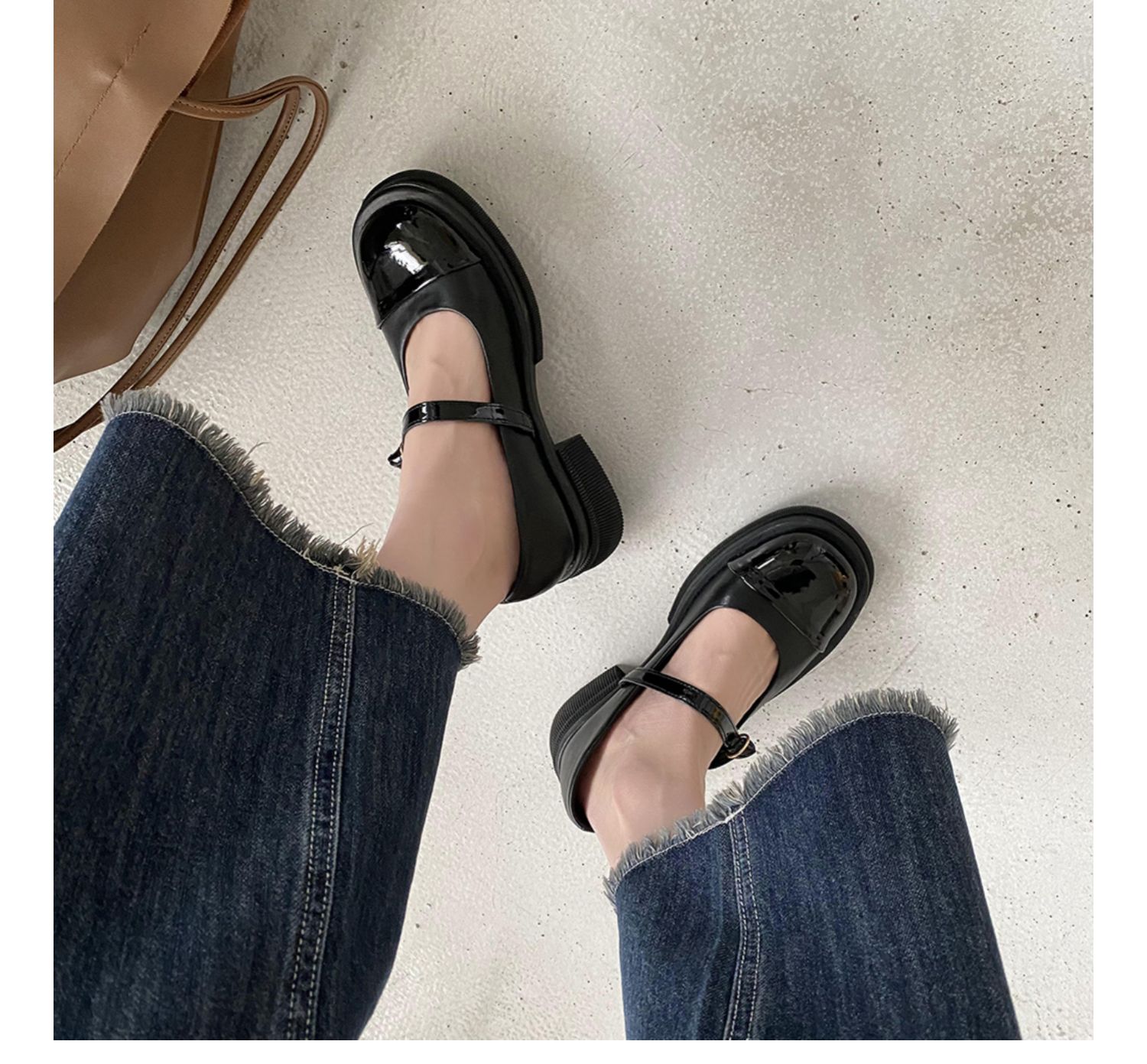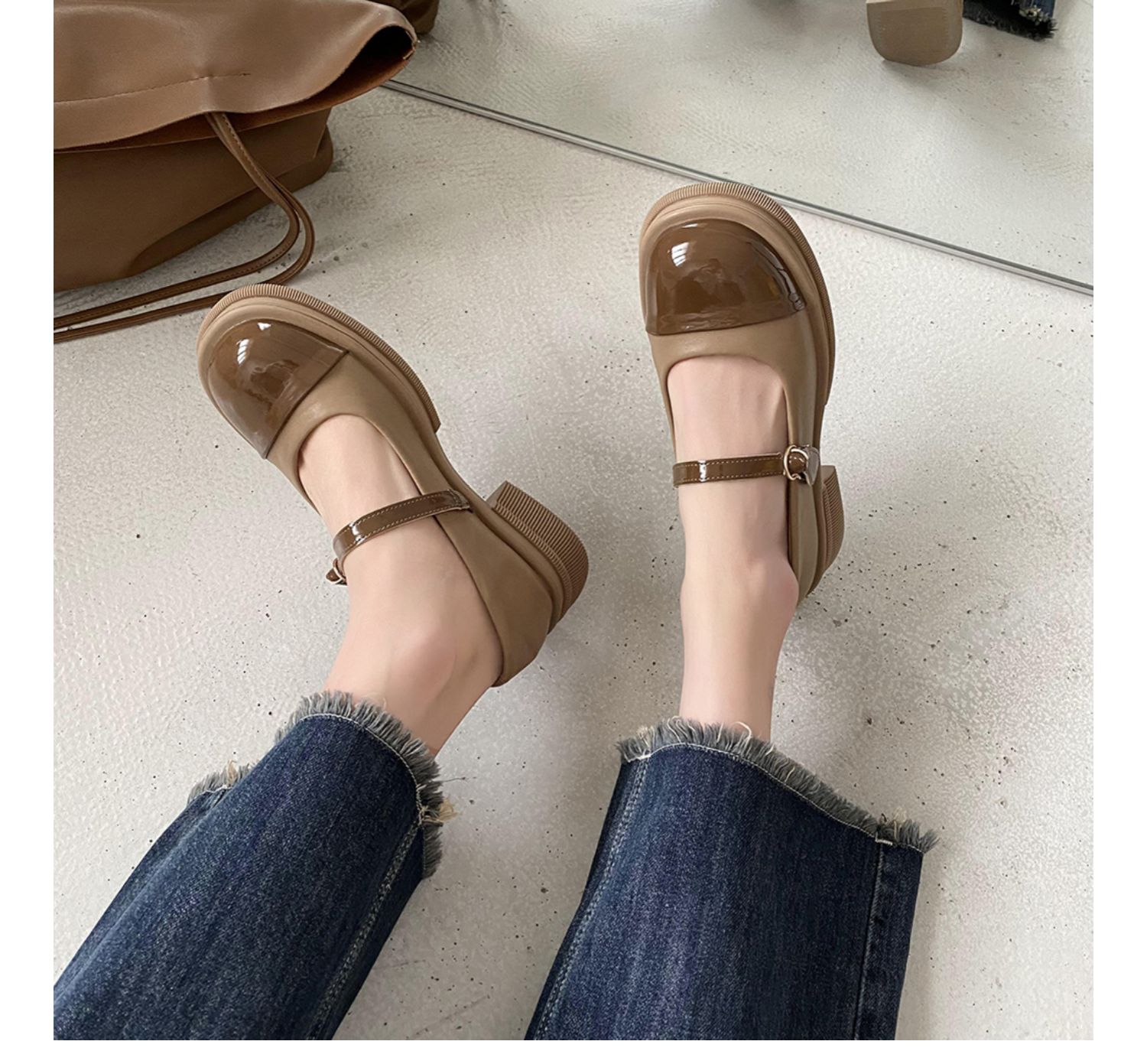 Винтаж винтаж Небольшой кожаная обувь Женский 2022 весна новая коллекция модные ученик толстая Нижняя обувь высокая черный широкий каблук туфли