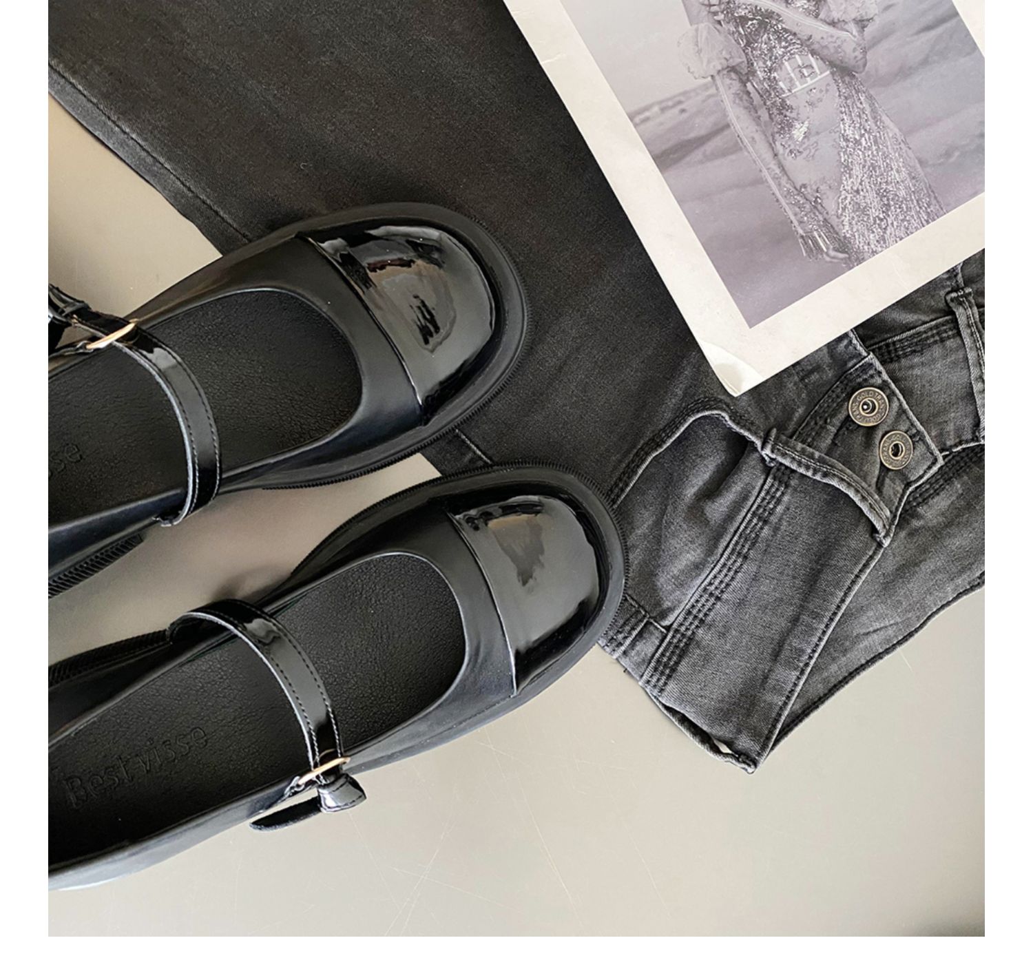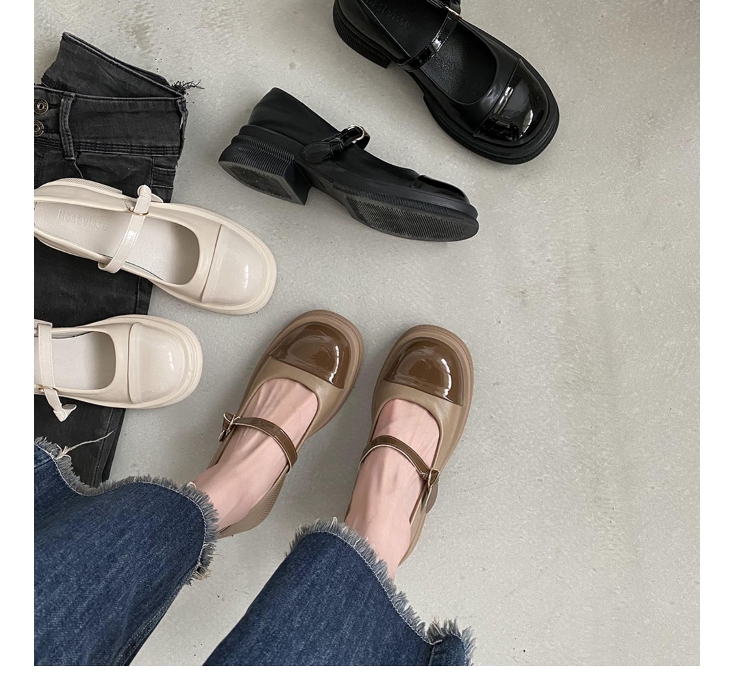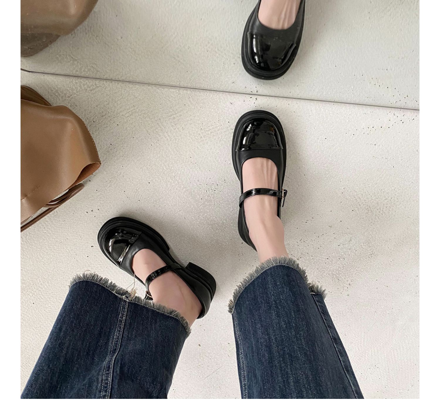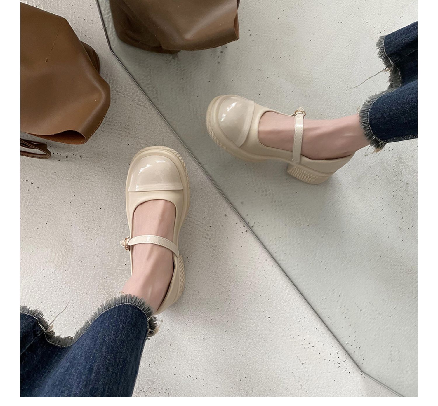 Винтаж винтаж Небольшой кожаная обувь Женский 2022 весна новая коллекция модные ученик толстая Нижняя обувь высокая черный широкий каблук туфли