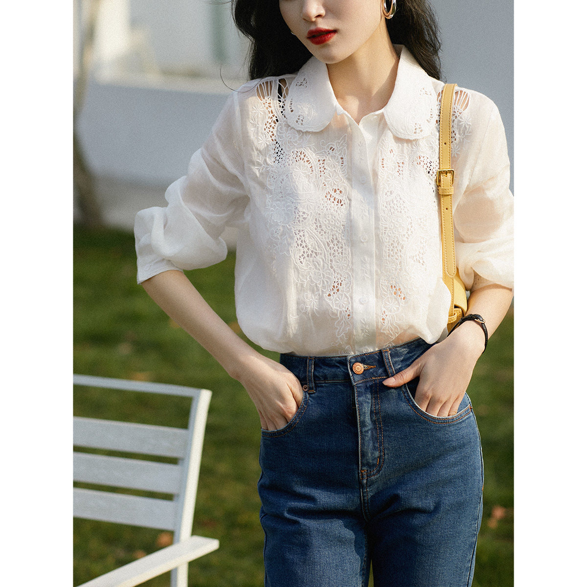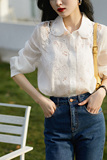 [CY221133AG] высокая Конец строки! темно В вышивке позиционирования тяжелой промышленности Рами женский белый сорочка