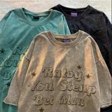 Американец винтаж Старая вышивка на улице короткий рукав Футболка мужские и женские Летняя старинная древняя гавань верх Прилив