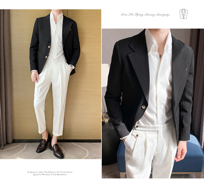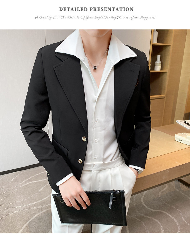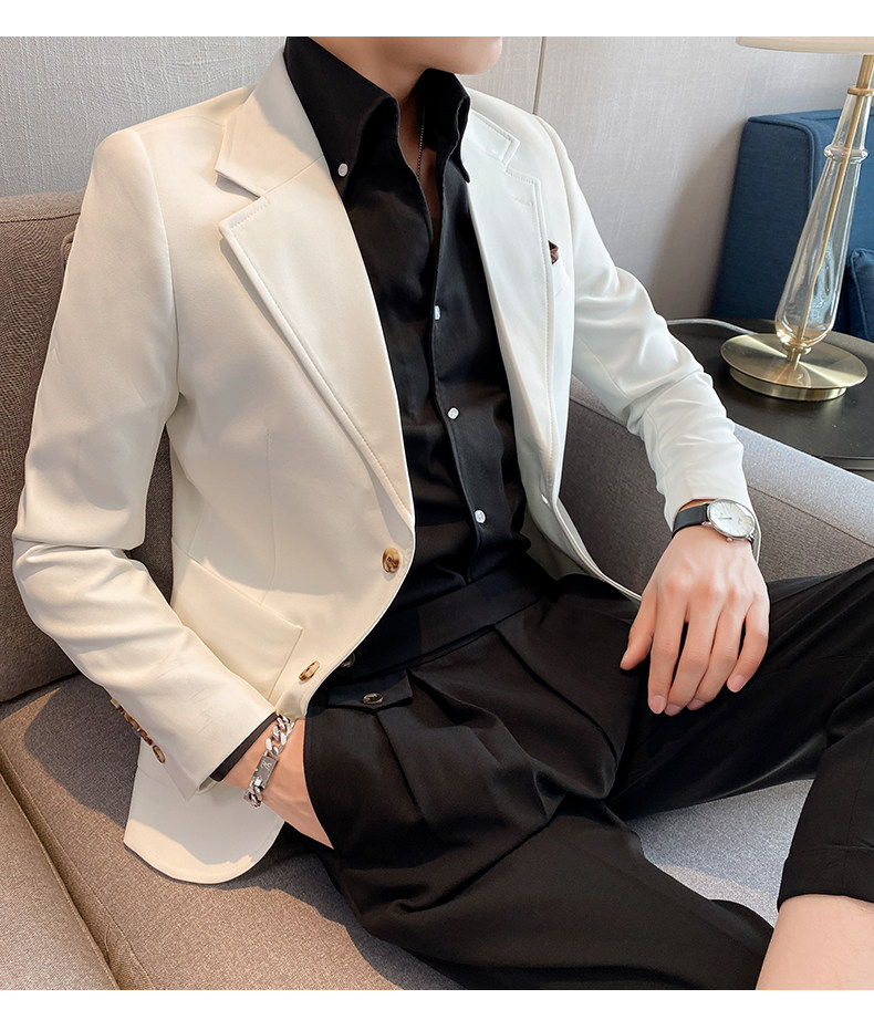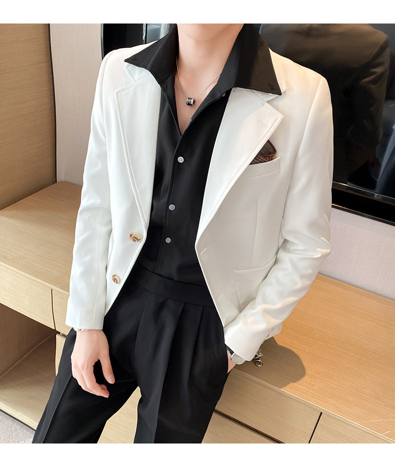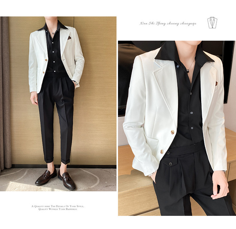 Весна и лето мужской европейский покрой куртка Тонкий стиль высокая Ощущение уровня корейская версия для отдыха Бизнес белый Подходить верх Одежда красивая