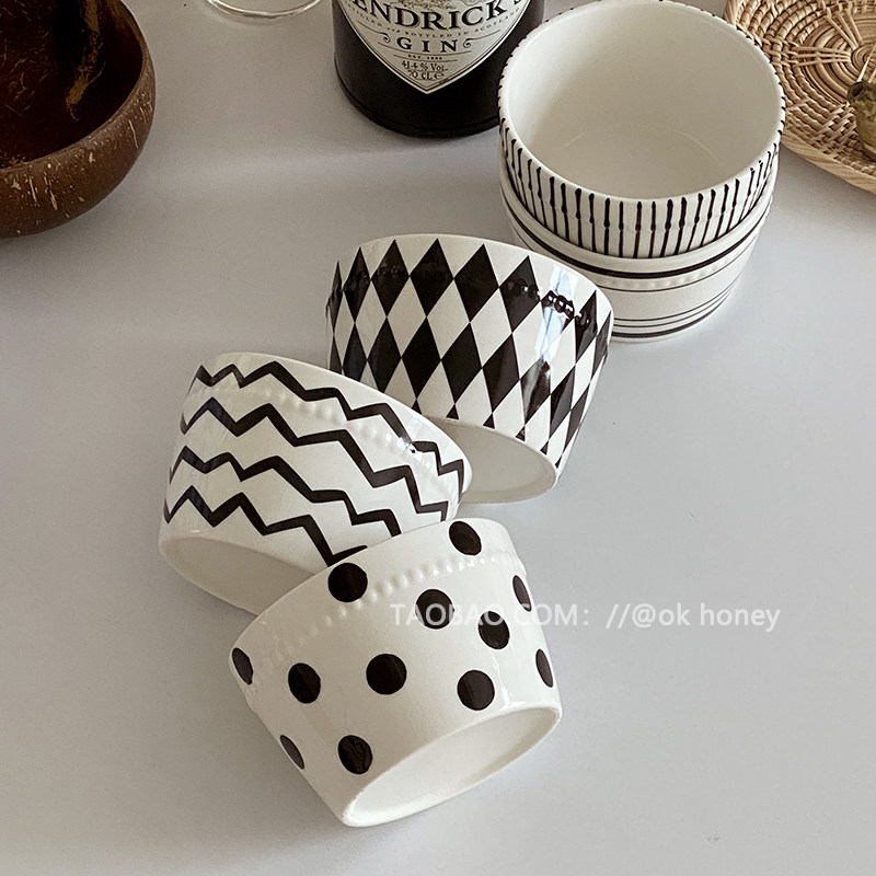 Черный белый Современная простая керамика рисовая чаша домашняя салат -чаша рисовая чаша в кореи хепберн комплект