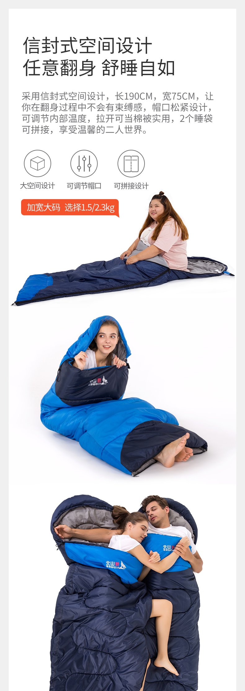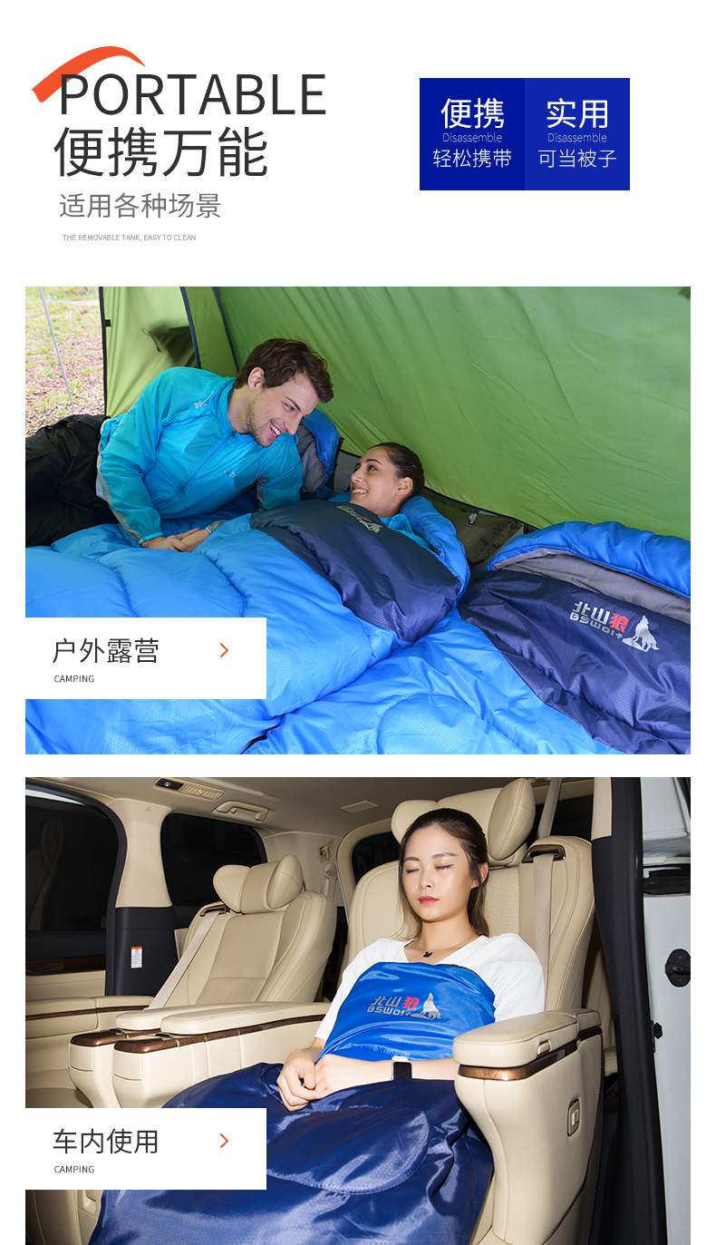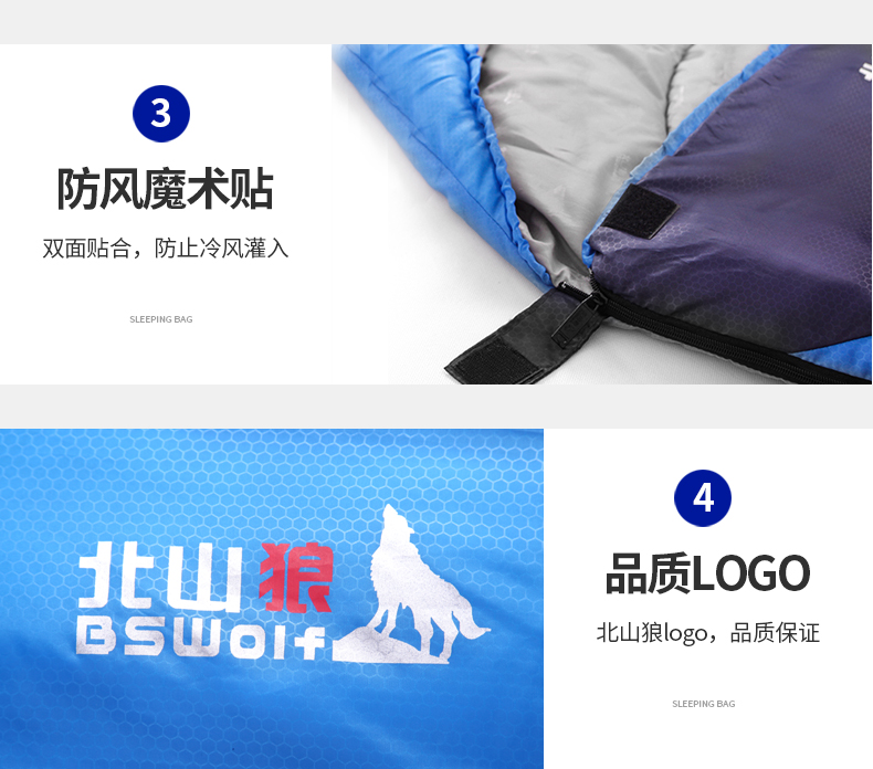 Бешан Волк Спящие мешки утепленный на улице осень-зима Четвертьярный удерживающий тепло Доверие хлопок спальный мешок