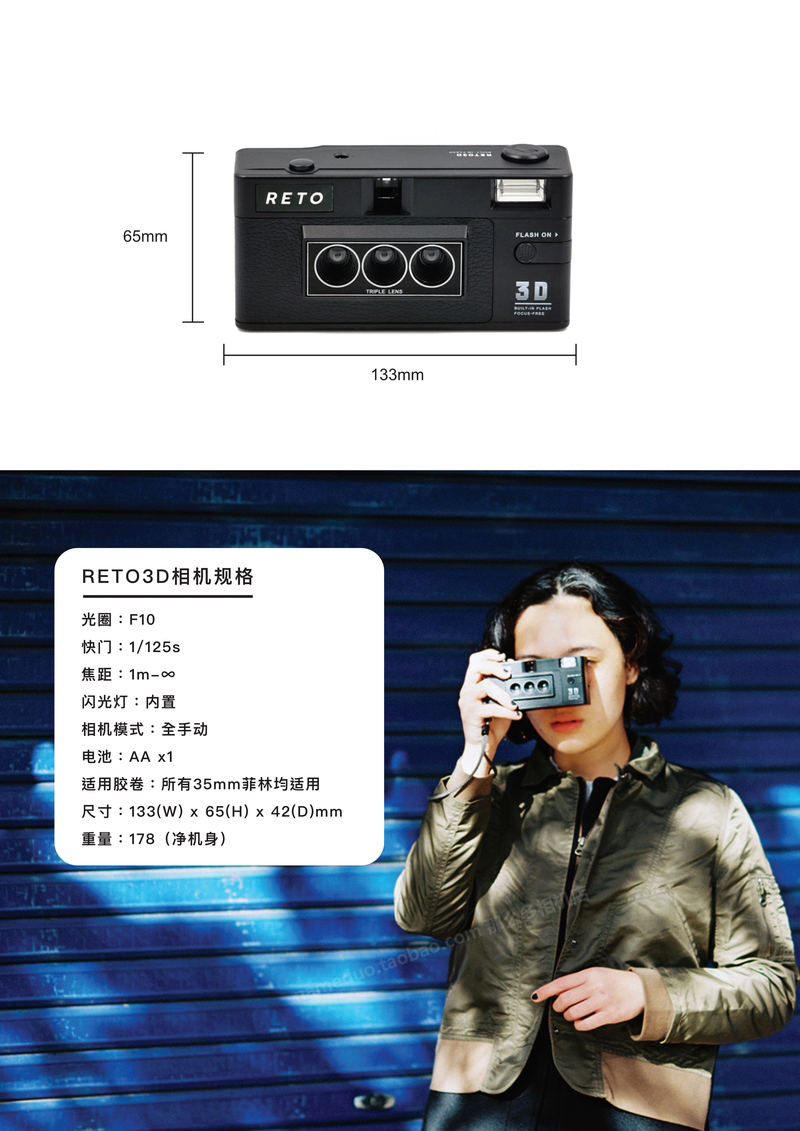 Сф бесплатная доставка по китаю ДействительноReto 3D камера 135 фильма Reto3D винтаж Пленка стерео трехграшно-камера
