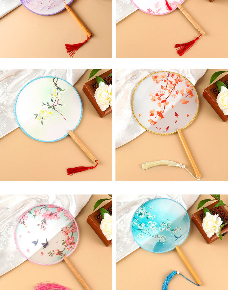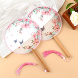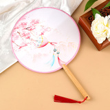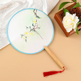Вентилятор, ханьфу, ципао, двусторонний круглый круглый веер, с вышивкой