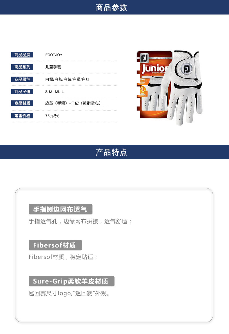 FootJoy муж перчатки FJ Junior перчатки Молодежная практика воздухопроницаемый Износостойкий только перчатки